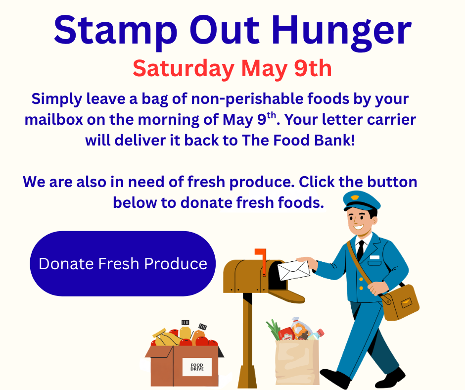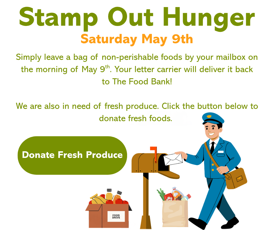 The Food Bank welcomes donations of all perishable and non-perishable, unopened food. Donations can be dropped off at our warehouse store.
